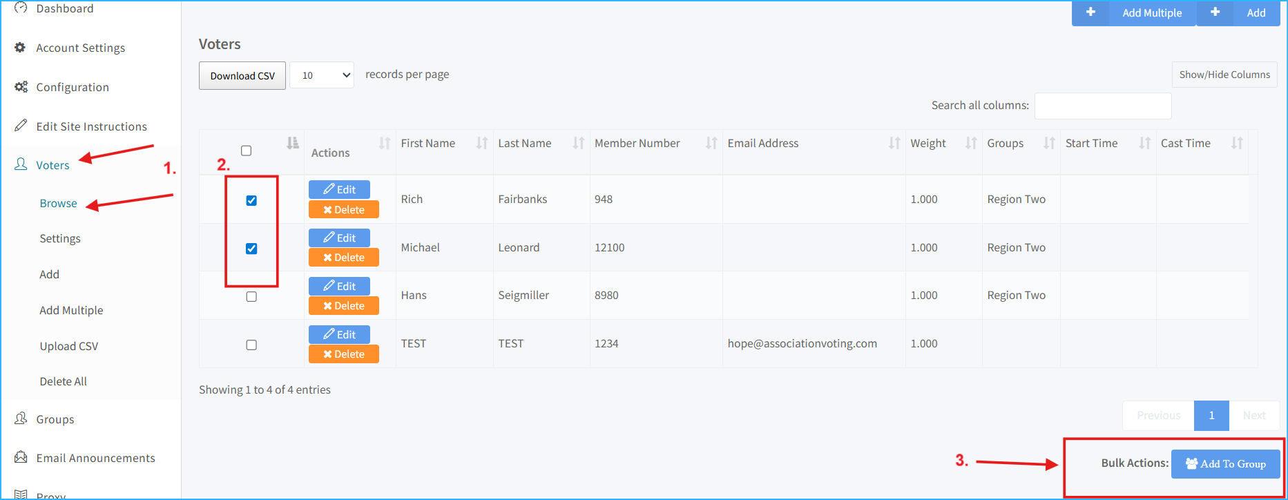 If you have multiple voters that need to be deleted from your voter list, please follow these steps: