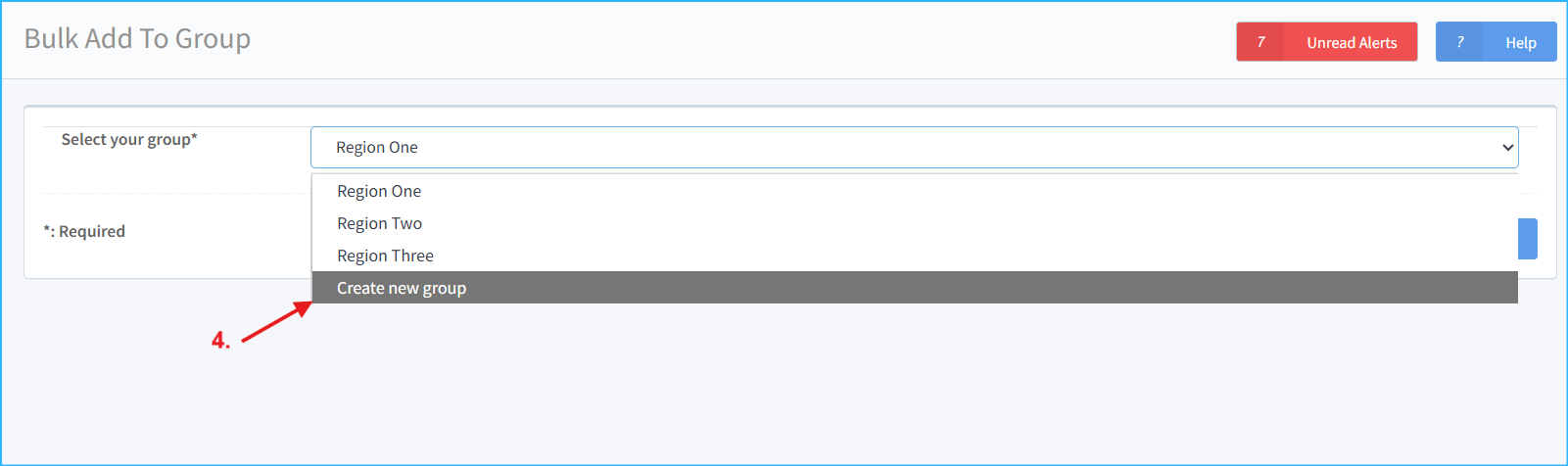 - On the Bulk Add to Group page, use the dropdown menu to create a new group