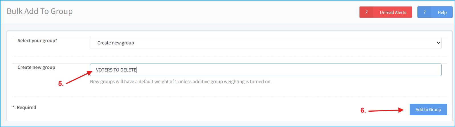 - Type the name of the group (recommended: VOTERS TO DELETE) See Image below