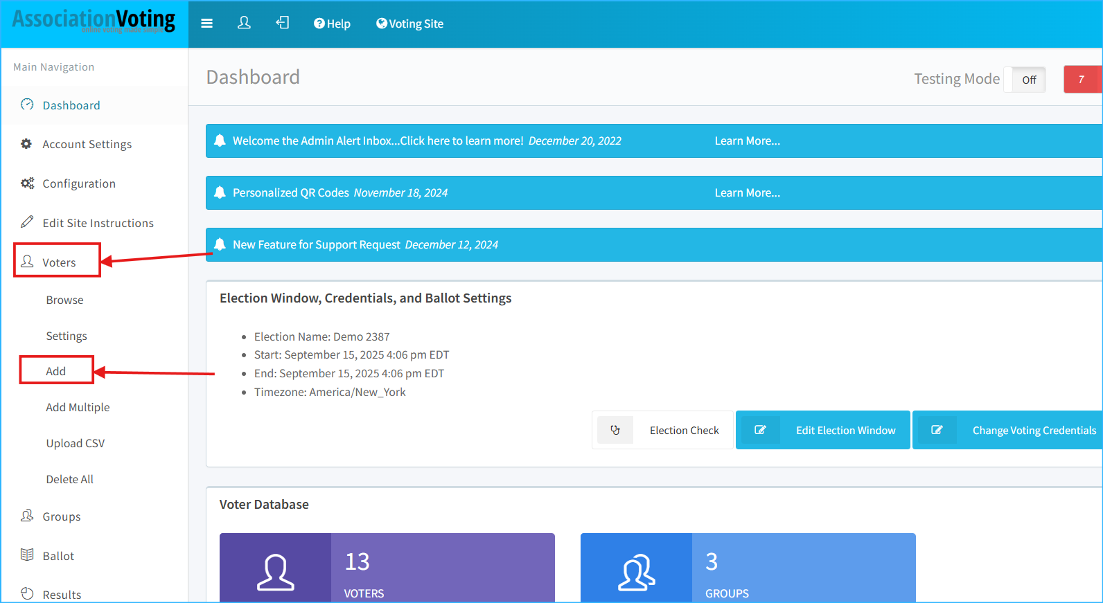 Sometimes you forget to add one or two people for voting or there are some new members you’re your organization! It is really easy to add individuals without making a whole new excel.CSV file to upload. This method of course is recommended if you have maybe 10 or fewer to add since manually doing more can take time.